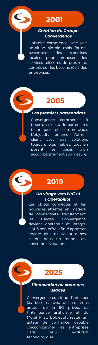 Depuis plus de 25 ans, le Groupe Convergence accompagne les entreprises françaises, publiques et privées, dans leur transformation digitale.